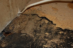 I was not planning to replace the subflooring, even though it was particle board, until I came across this nightmare. This was my subfloor – much of it could be removed with no other tool than the shop vac. It doesn’t take many years of study to learn that a floor that can be swept away does not add much structural integrity to your house. What’s worse is that rotten particle board would not hold any of my hardwood flooring nails, so new kitchen floor would creak and the cabinets might not feel as solid as they would on new subfloor. As much as it sucks, I would hate to install a new kitchen on rotten subfloor just to save $200. Therefore, from that mess, I decided to rip it all out.